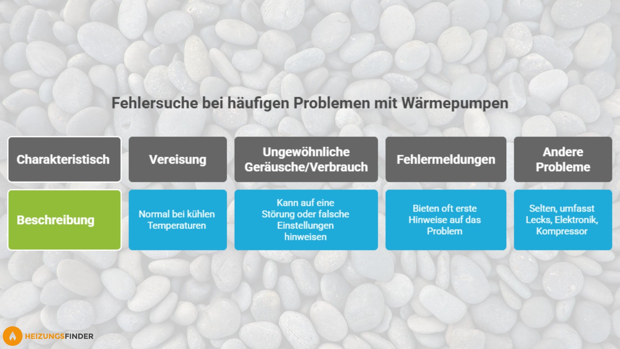 Typische Fehler der Wärmepumpe und deren Einordnung. | Grafik: Heizungsfinder.de/KI